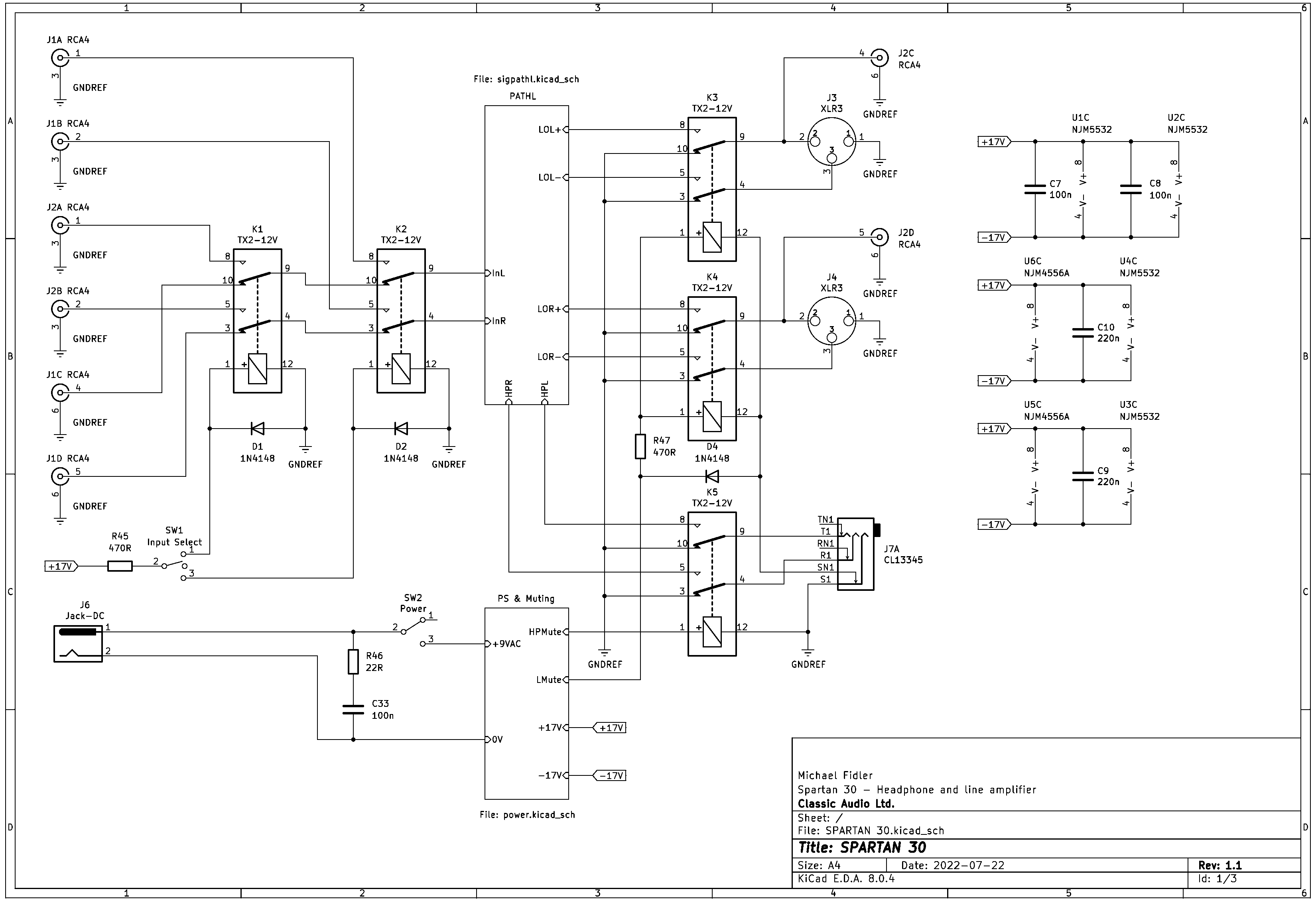 Michael designed the Spartan 30 primarily as a headphone amp and a line stage to facilitate using active studio monitors for home audio. This isn’t as silly as it sounds. Active monitors pair amplification with a loudspeaker, usually with some form of electronic crossover or tuning via digital signal processing (DSP).